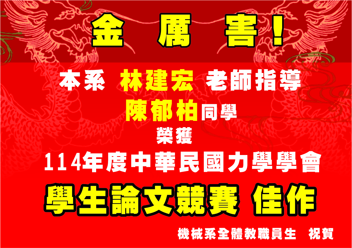 / 恭賀!林建宏實驗室114年度中華民國力學學會學生論文競賽佳作