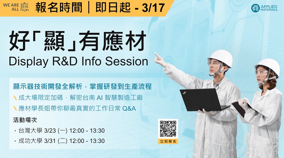 零距離走進應材顯示器技術核心,完整了解設備從研發→ 設計驗證→ 測試→ 量產的全流程。